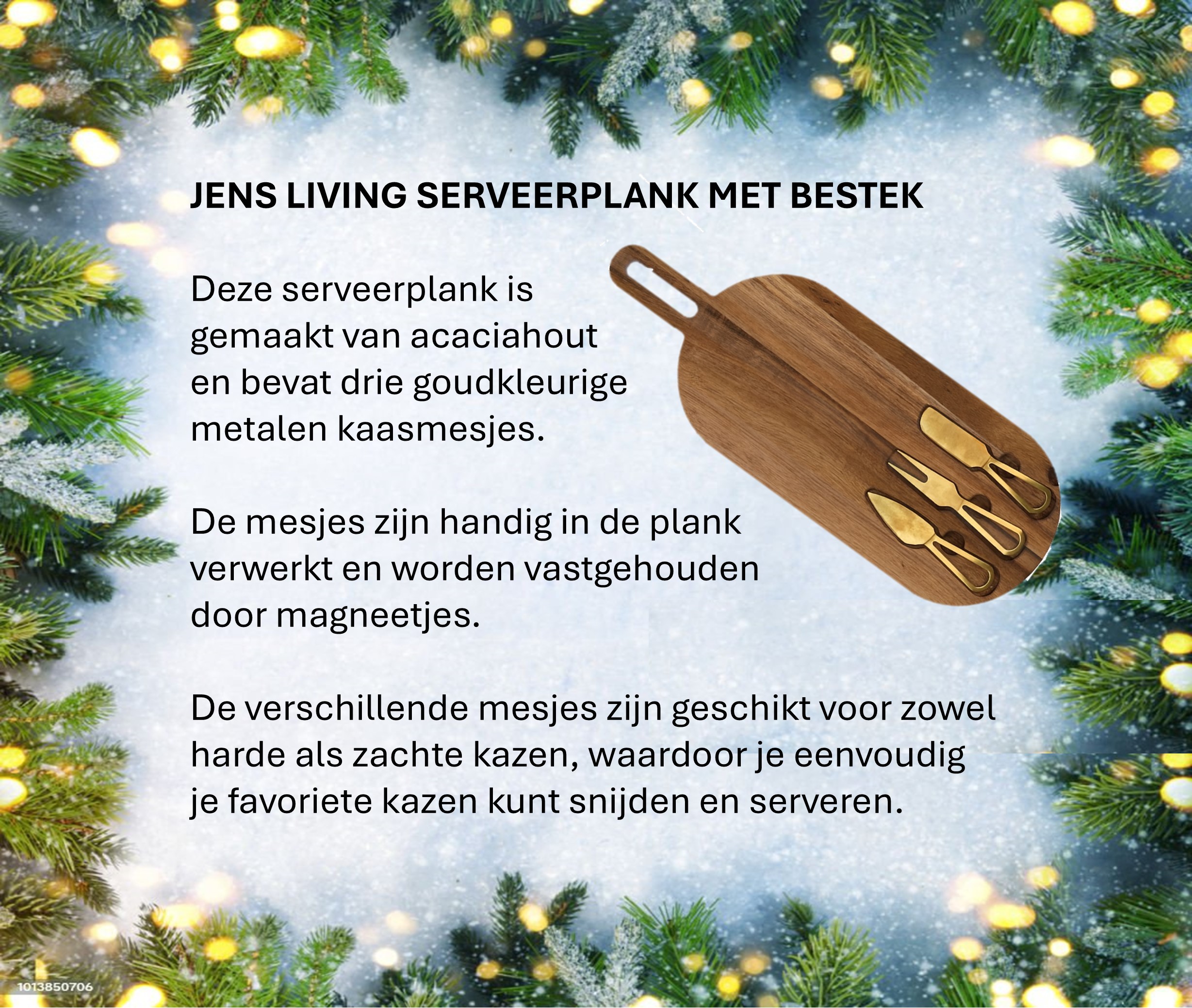 Verras relaties met een bijzonder kerstgeschenk dat smaak en betekenis samenbrengt. Dit pakket bestaat uit een elegante houten kaasplank met magnetisch vastgezet kaasbestek, een pont kaas van IntermeZZo – stichting voor nazorg bij kanker, knapperige Italiaanse dipsticks en een potje mosterd-dille.